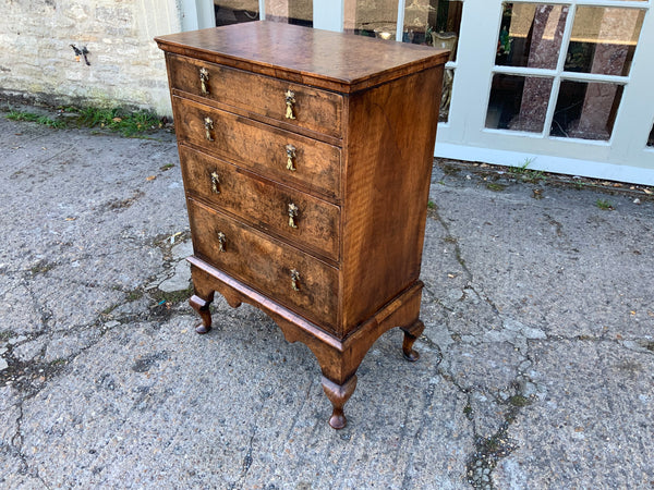 Very pretty small chest on stand with original drop handles. Nice colour and comes in two parts. With four graduated drawers.