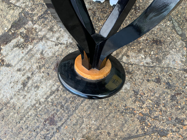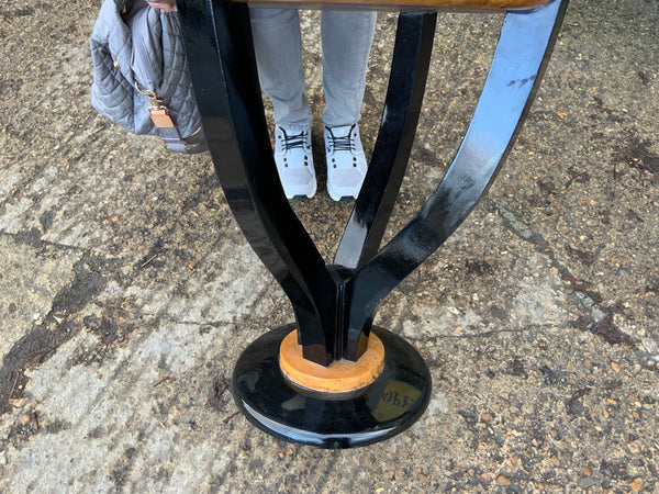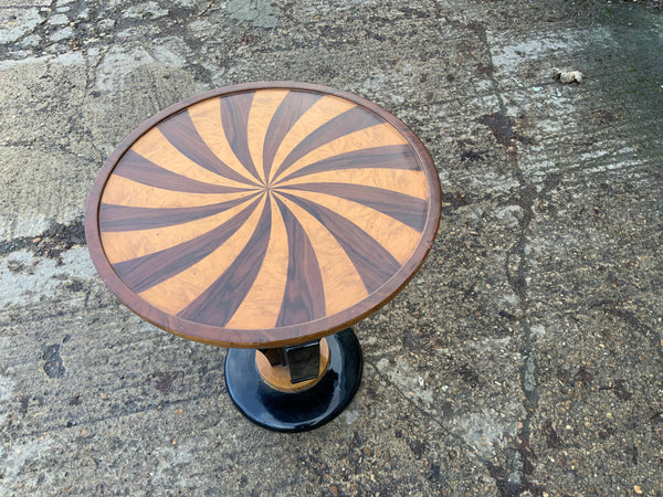 Very pretty round table/lamp table with inlaid wood in the Ceylonese manner.